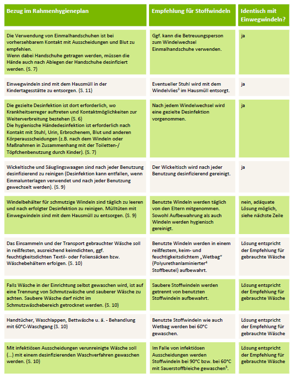 - Das Formale: Es gibt in Deutschland keine Vorschriften, die das Wickeln mit Stoffwindeln in der Betreuung verbieten. Hygienevorschriften können auch mit Stoffwindeln eingehalten werden.
